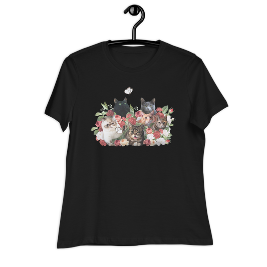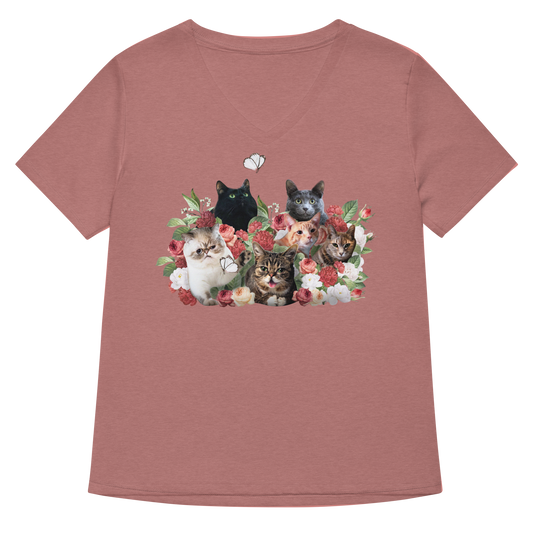Women’s Relaxed V-Neck Tee - Cat Bouquet