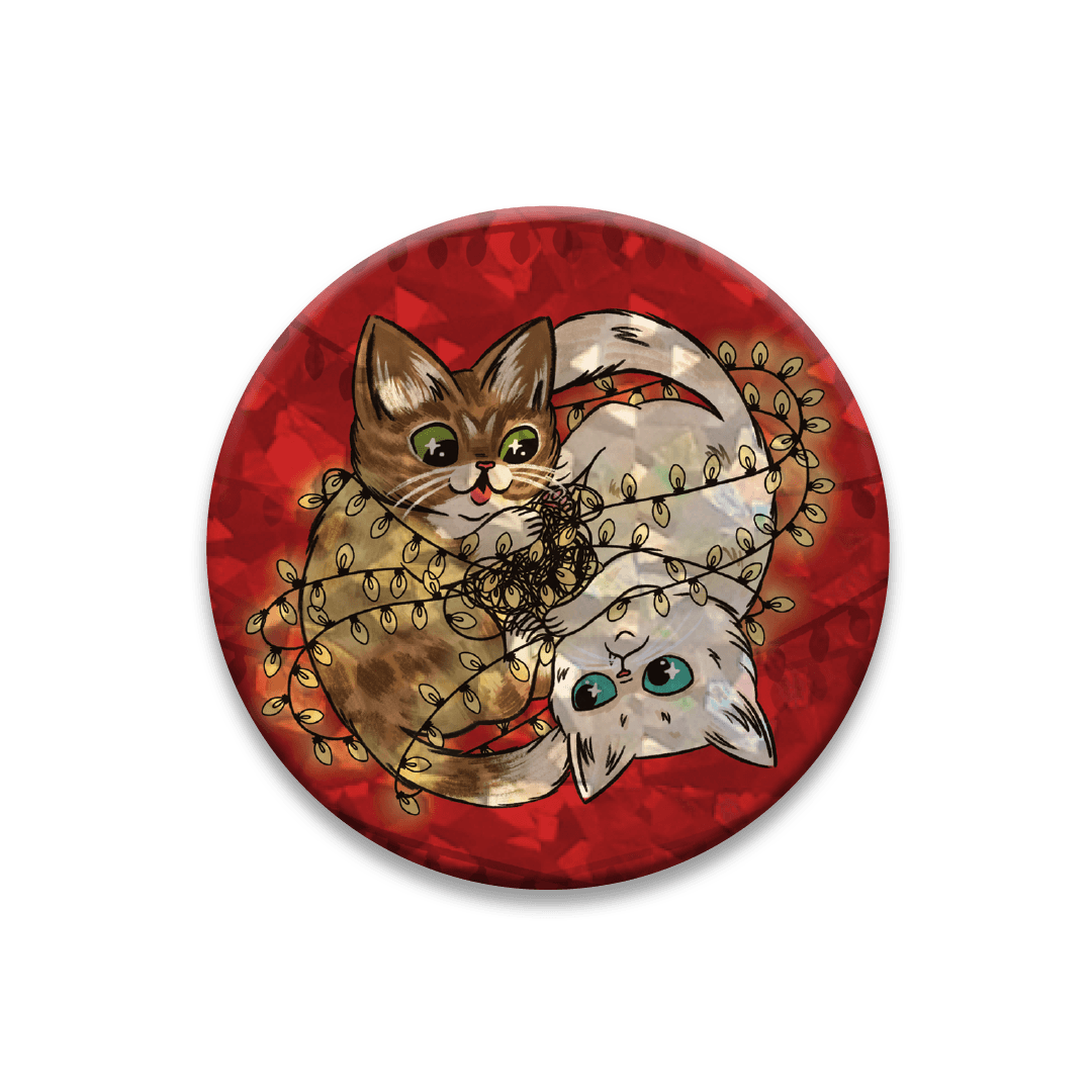 This perfect holiday magnet features BUB and Marbles getting tangled in Christmas Lights.