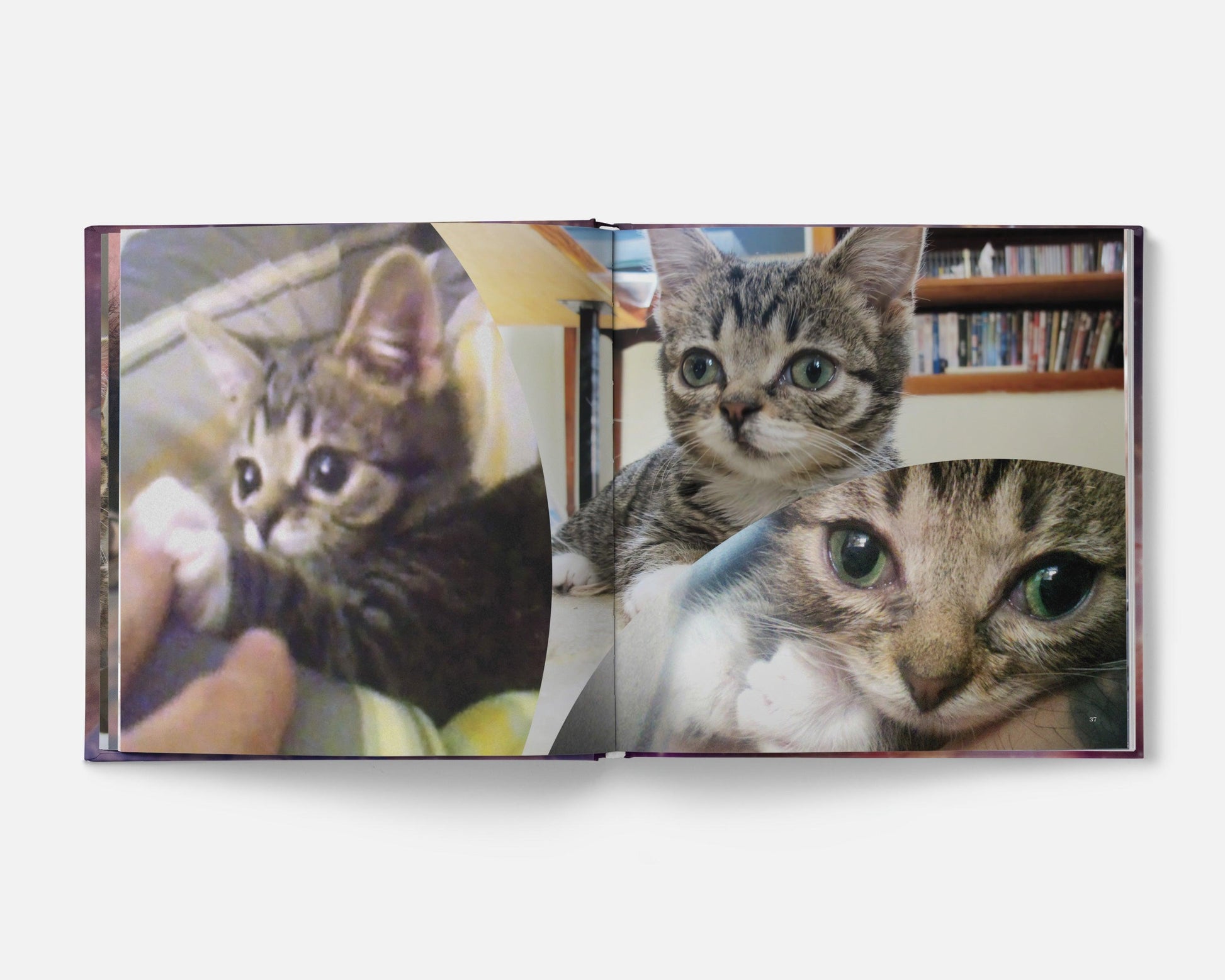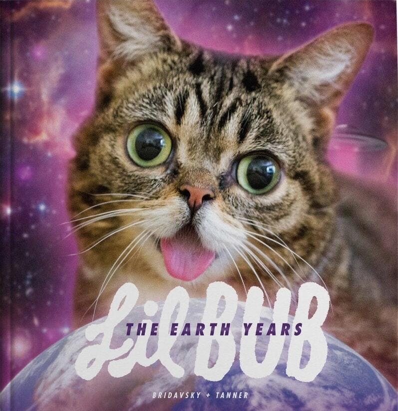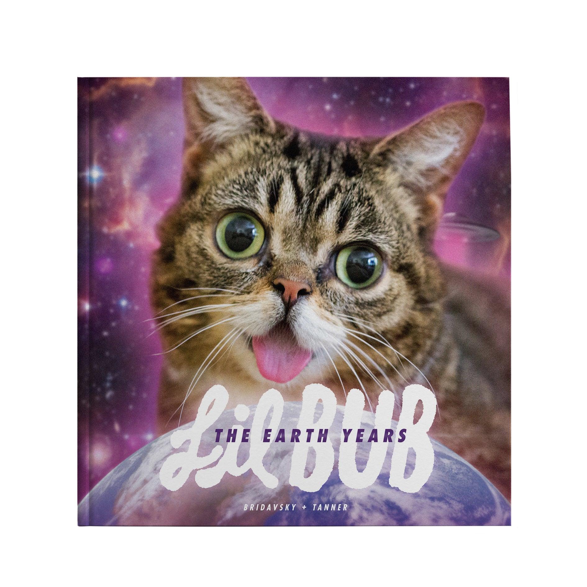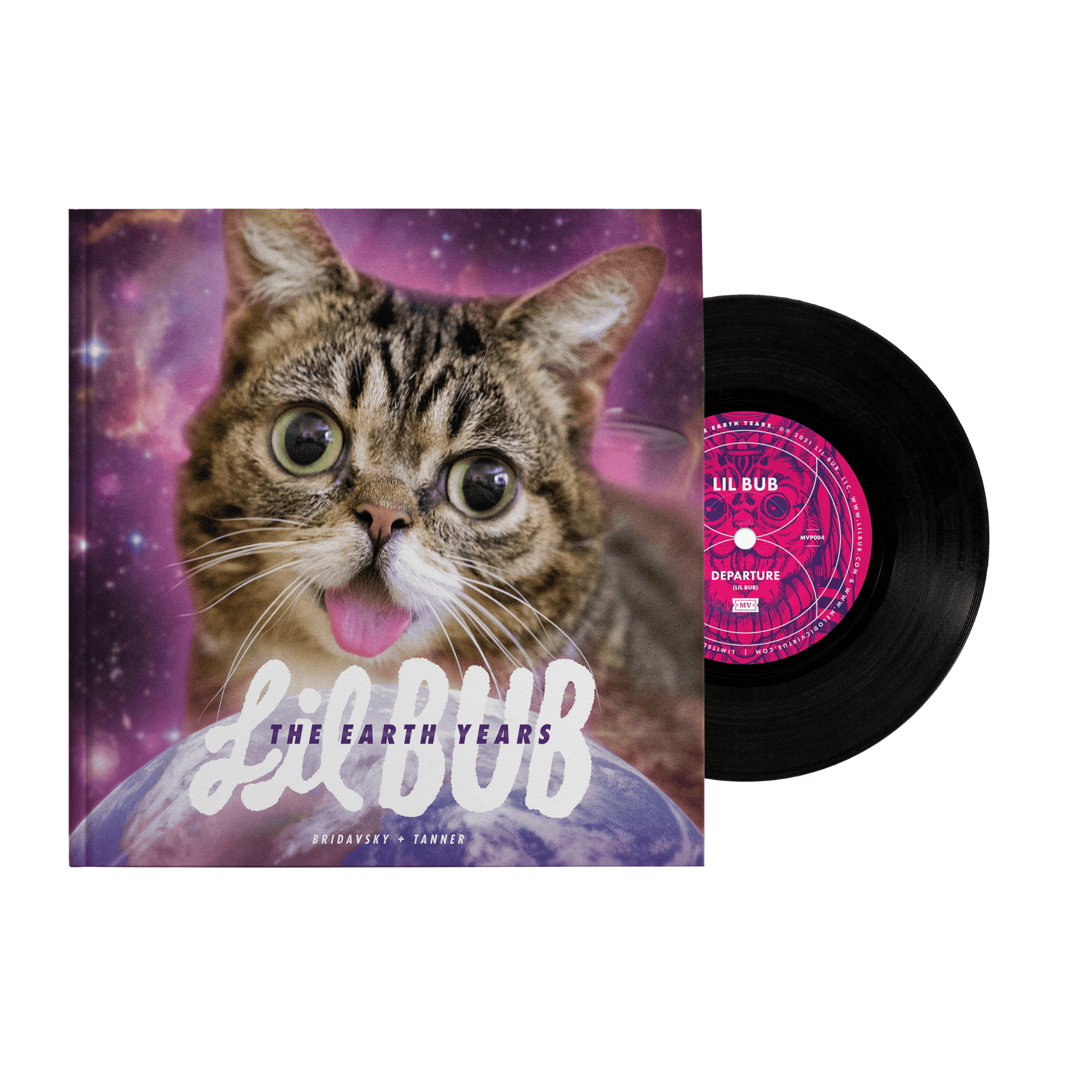 Lil BUB: The Earth Years is a limited edition commemorative book celebrating the life and legacy of Lil BUB. It is a hard-bound, hand-numbered, limited-edition, 376-page 9"x 9" coffee table book with exclusive 7” record titled Transmissions From Space (featuring two new pieces composed by Lil BUB herself, from her intergalactic afterlife).