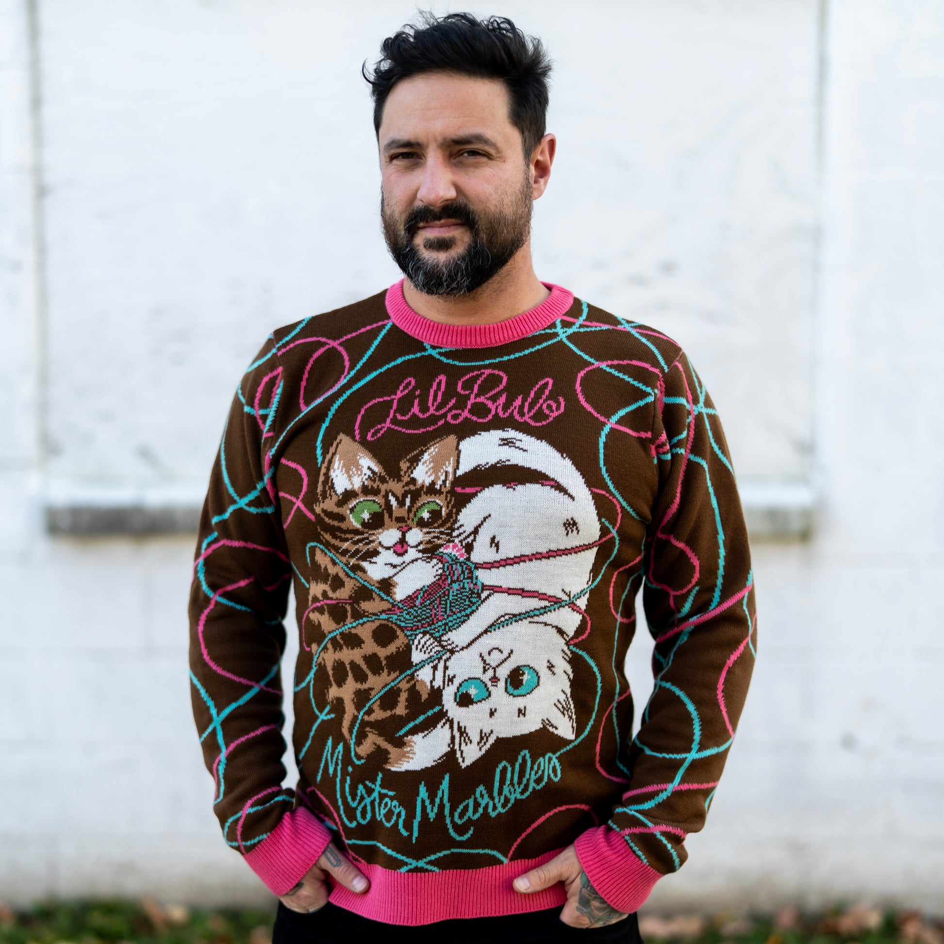 Can't choose between BUB and Marbles? Then choose the YIN YArNG sweater cause it has both of them in equal parts yin and yarng.